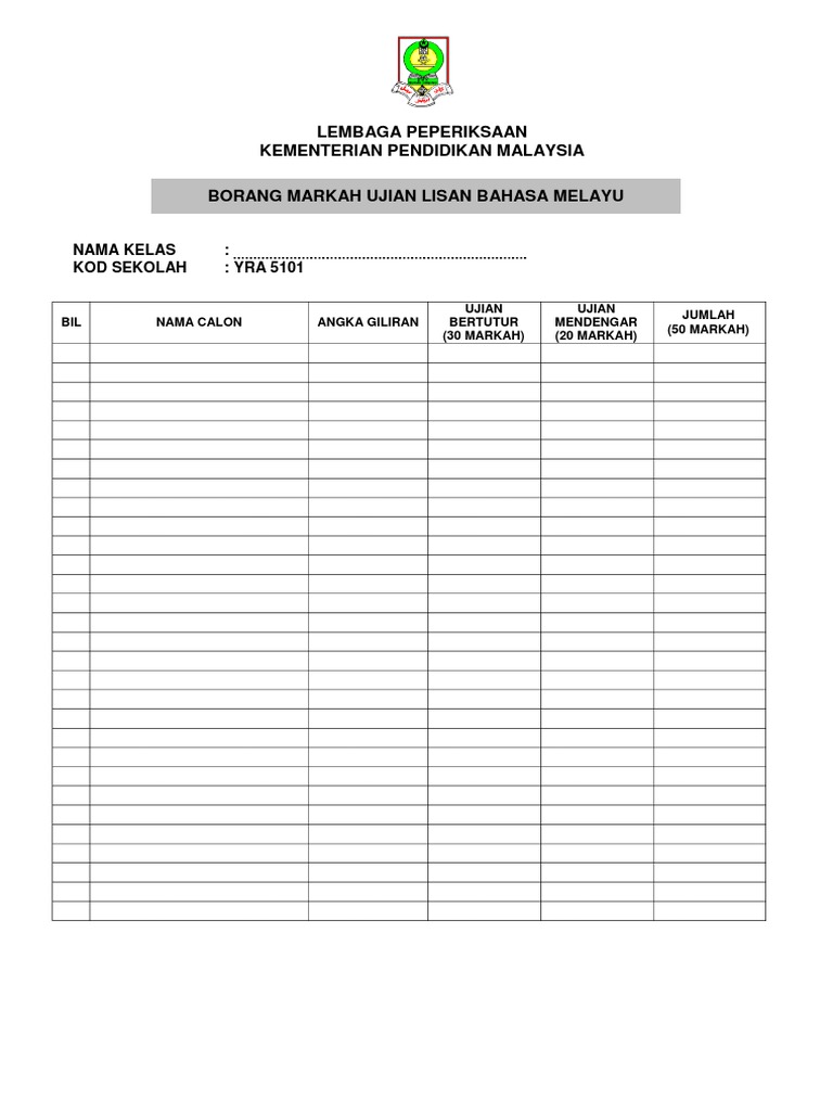 Borang Markah Ujian Lisan Bm Pdf